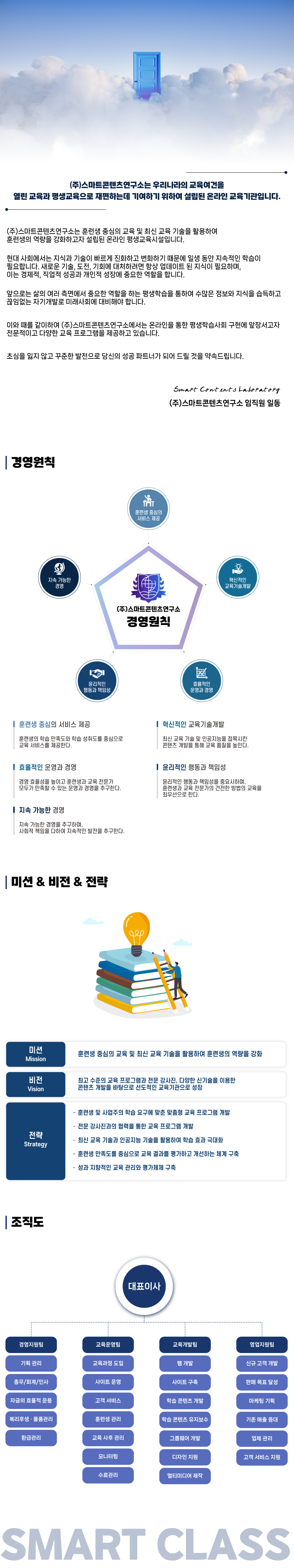 (주)스마트콘텐츠연구소 | 사업자등록번호 : 785-86-00968 | 통신판매번호 : 2023-서울금천-1218 | 개인정보관리책임자 : 김현일
